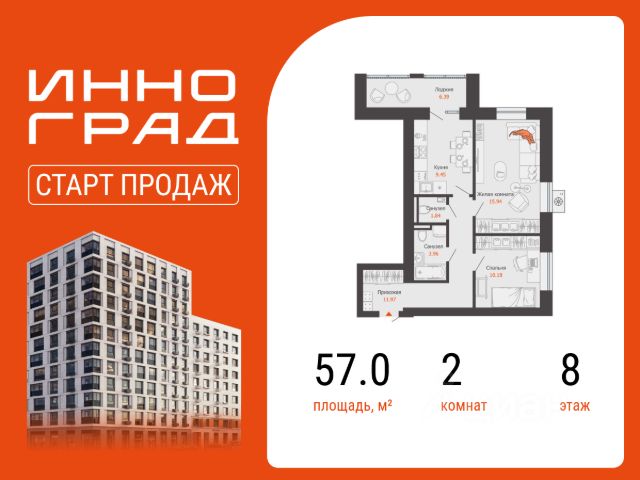 В уютном районе Кирова продается 2-комнатная квартира площадью 57.00 кв. м . Квартира расположена в новом жилом комплексе комфорт-класса "Инноград" от девелопера "Железно". "Инноград" - это больше, чем просто жилой комплекс. Это полноценный город в городе, где всё необходимое для насыщенной жизни, работы и отдыха находится в шаге от вашего дома. Транспортная доступность • 1 остановка общественного транспорта и 3 автобусных маршрута; • 10 минут на машине до Ж/Д вокзала; • 15 минут до центральной улицы Ленина; • 17 минут до набережной реки Вятки. Архитектура с характером Динамичный и современный облик "Иннограда" формирует архитектурное разнообразие. Здесь уютная среднеэтажная застройка сочетается с выразительными высотными доминантами. Для отделки среднеэтажных домов подобран кирпич - проверенный временем материал, который обеспечивает долговечность, превосходную шумоизоляцию и здоровый микроклимат в каждой квартире. Высотные кирпичи возводятся по современной монолитной технологии, что позволяет создавать здания со свободной планировкой и впечатляющей архитектурой. Благоустройство и удобство Ваш дом - ваша крепость. В "Иннограде" эта идея воплощена в концепции закрытых дворов. Это приватные и безопасные пространства только для жителей, где вы и ваши дети можете наслаждаться спокойствием и комфортом, будучи на шаг впереди городской суеты. Красоту ландшафта подчеркивает озеленение и МАФы. Центром социальной жизни "Иннограда" станут две общественных площади для встреч, прогулок и общения, а также инновационный плейхаб для активного отдыха жителей всех возрастов. Инфраструктура для жизни и бизнеса • Собственный бизнес-центр, ФОК и медицинский центр; • Соседский центр, коворкинг и Школа искусств; • Два встроенных детских сада на 280 мест и отдельно стоящий на 320 мест; • Новая современная школа на 1500 учеников; • Встроенная коммерция на первых этажах.
