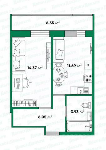 При продаже квартиры остается качественный встроенный кухонный гарнитур, варочная панель, вытяжка, встроенная прихожая, мебельная стенка в гостиной, шкаф-купе в маленькой комнате, встроенная мебель в ванной.