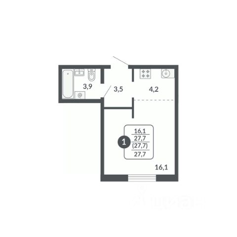 Планировка квартиры подразумевает комнату площадью 15 кв.м, которая благодаря большому окну наполняется естественным светом и создает уютную атмосферу.