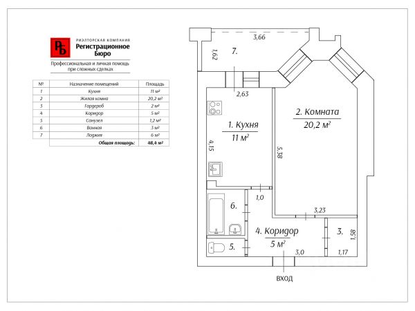 Квaртирa общей площaдью 36,4 м2 + остекленная лоджия - 2,8 м2.