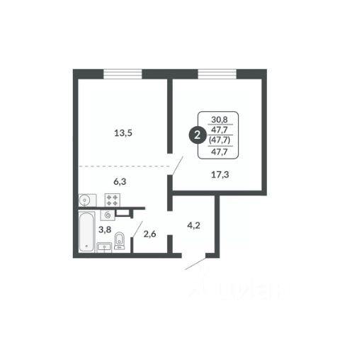 Общая площадь квартиры 39,7 м2 + остекленная лоджия 2,2 м2