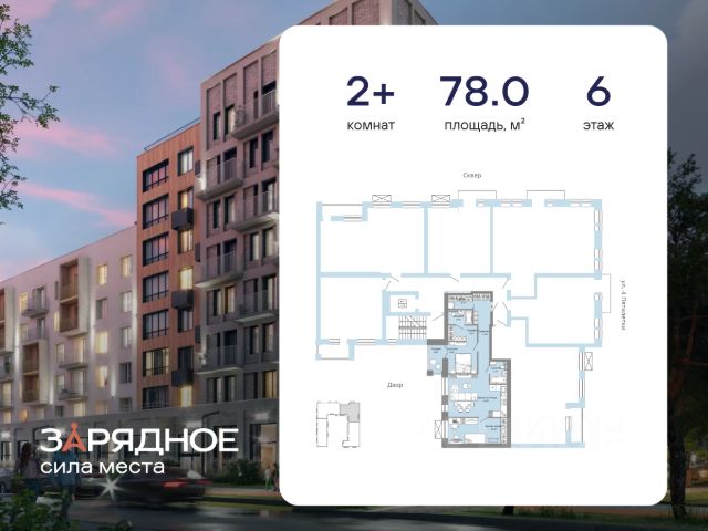 Продается 2-комнатная квартира, корпус 4/2, площадь 75.00 кв. Квартира находится в жилом комплексе комфорт-класса "Зарядное" (ГК "Железно"). Девиз проекта - зарядись силами места! Жилой комплекс построен по принципу соразмерной среды: дома высотой от 4 до 8 этажей. Малоэтажная застройка позволила сделать виды из окон максимально открытыми на природу. Березовая роща, многолетние дубы, а также новые места притяжения будут видны из любой квартиры. Дворы "Зарядного" подчеркивают общую идею проекта - единение с природой, баланс между оживленным городом и зелёным оазисом. Центром притяжения в комплексе является парк, вдохновленный лесами Вятки - именно в нем растут многолетние сосны и березы, украшающие территорию. При благоустройстве комплекса особое место было отведено общественным пространствам: - В каждом доме располагаются дизайнерские лобби, созданные с глубокой проработкой и вниманием к деталям; - Открытая терраса, которая располагается на возвышенности дома. Вы сможете любоваться на природные красоты, принимать участие в совместных мероприятиях с соседями, работать на свежем воздухе и приятно проводить время с близким; - Общественное пространство - соседский центр, который станет отличным местом "для своих", где можно организовывать встречи по интересам, проводить собрания и мастер-классы; - Зимой парк превращается в настоящую зимнюю сказку! Спортивная площадка заливается под каток, где жители могут насладиться катанием на коньках. Для любителей активного отдыха предусмотрена горка для катания на санках и снегокатах. Архитектура проекта создает единую картину, вдохновленную общей идеей уважения к местной идентичности любимого города. Успейте приобрести квартиру на выгодных условиях! Чтобы узнать подробности, обращайтесь за консультацией по телефону.