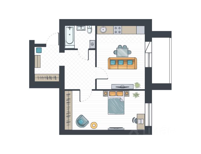 Посмотрите на планировку: просторная гостиная, словно приглашает вас провести вечер с книгой или собрать близких за чашкой чая. Кухня, наполненная солнечным светом, станет местом для воплощения кулинарных фантазий и теплых домашних завтраков. Уютная спальня манит уютом и покоем, а продуманный санузел и прихожая создают комфорт с первых секунд вашего пребывания.