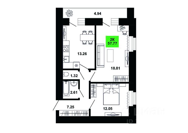 Лоджию площадью 7,1 м² | утеплена, тем самым увеличена полезная жилая площадь квартиры и функционал в целом.