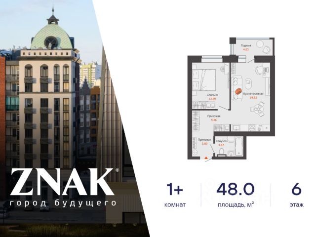 Увеличенный оконный проем визуально расширяет пространство и обеспечивает отличную естественную инсоляцию.