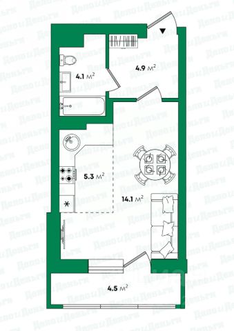 Квартира общей площадью 38,5 кВ. метров включает в себя: