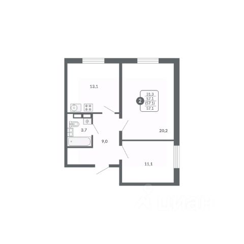 • ✓ В базе объявлений Циан 57 2-комнатных квартир на улице Потребкооперации в городе Киров.