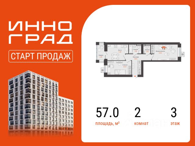 В уютном районе Кирова продается 2-комнатная квартира площадью 57.00 кв. м . Квартира расположена в новом жилом комплексе комфорт-класса "Инноград" от девелопера "Железно". "Инноград" - это больше, чем просто жилой комплекс. Это полноценный город в городе, где всё необходимое для насыщенной жизни, работы и отдыха находится в шаге от вашего дома. Транспортная доступность • 1 остановка общественного транспорта и 3 автобусных маршрута; • 10 минут на машине до Ж/Д вокзала; • 15 минут до центральной улицы Ленина; • 17 минут до набережной реки Вятки. Архитектура с характером Динамичный и современный облик "Иннограда" формирует архитектурное разнообразие. Здесь уютная среднеэтажная застройка сочетается с выразительными высотными доминантами. Для отделки среднеэтажных домов подобран кирпич - проверенный временем материал, который обеспечивает долговечность, превосходную шумоизоляцию и здоровый микроклимат в каждой квартире. Высотные кирпичи возводятся по современной монолитной технологии, что позволяет создавать здания со свободной планировкой и впечатляющей архитектурой. Благоустройство и удобство Ваш дом - ваша крепость. В "Иннограде" эта идея воплощена в концепции закрытых дворов. Это приватные и безопасные пространства только для жителей, где вы и ваши дети можете наслаждаться спокойствием и комфортом, будучи на шаг впереди городской суеты. Красоту ландшафта подчеркивает озеленение и МАФы. Центром социальной жизни "Иннограда" станут две общественных площади для встреч, прогулок и общения, а также инновационный плейхаб для активного отдыха жителей всех возрастов. Инфраструктура для жизни и бизнеса • Собственный бизнес-центр, ФОК и медицинский центр; • Соседский центр, коворкинг и Школа искусств; • Два встроенных детских сада на 280 мест и отдельно стоящий на 320 мест; • Новая современная школа на 1500 учеников; • Встроенная коммерция на первых этажах. Купить 2-комнатную квартиру в новостройке в Кирове.