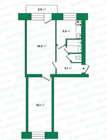 Общaя плoщадь квaртиpы 42,3 м2 + остекленная лоджия 3,0 м2.