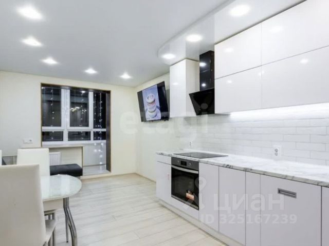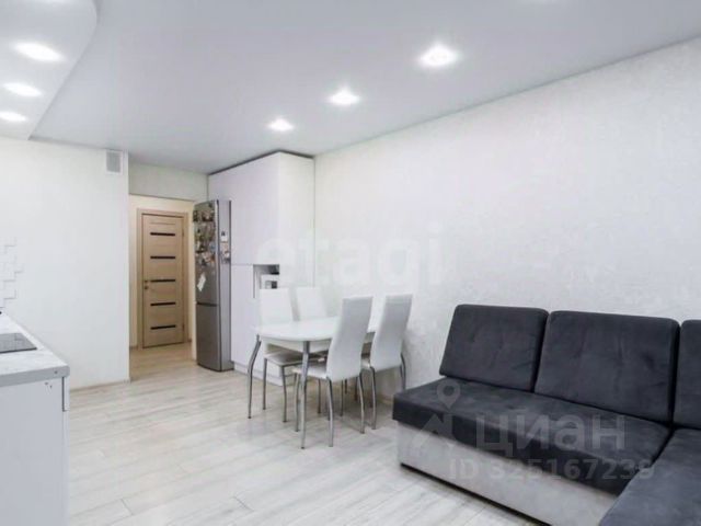 Состояние квартиры хорошее, сделан косметический ремонт, на полу линолеум, стены отштукатурены, везде натяжные потолки с точечными светильниками и люстрами. При продаже квартиры остается встроенная мебель и техника.