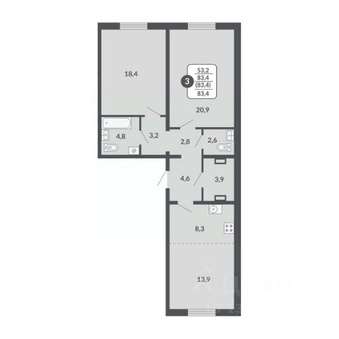 • ✓ В базе Циан 18 3-комнатных квартир на 12 этаже в Кирове