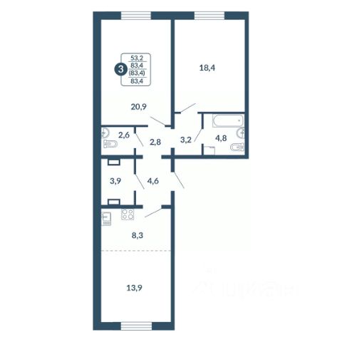 Планиpoвкa квартиры предполагает: кухня - гостиная - 29,2 м2, (кухонная зона - 11,8 м2, гостиная - 17,4 м2) с выходом на остекленный балкон, спальня. - 10,9 м2, детская 13,3 м2, санузел раздельный, просторная прихожая 13,2 м2.
