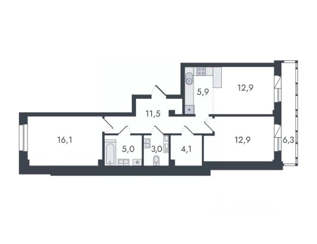 Планиpoвкa квартиры предполагает: кухня - гостиная - 13,5 м2,) с выходом на остекленную лоджию, спальня. - 13,4 м2, детская 14,6 и 9,7 м2, санузел раздельный, просторная прихожая 9,4 м2.