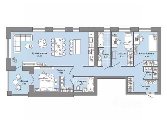 Продается 3-комнатная квартира, корпус 5, площадь 86.00 кв. Квартира находится в жилом комплексе комфорт-класса "Зарядное" (ГК "Железно"). Девиз проекта - зарядись силами места! Жилой комплекс построен по принципу соразмерной среды: дома высотой от 4 до 8 этажей. Малоэтажная застройка позволила сделать виды из окон максимально открытыми на природу. Березовая роща, многолетние дубы, а также новые места притяжения будут видны из любой квартиры. Дворы "Зарядного" подчеркивают общую идею проекта - единение с природой, баланс между оживленным городом и зелёным оазисом. Центром притяжения в комплексе является парк, вдохновленный лесами Вятки - именно в нем растут многолетние сосны и березы, украшающие территорию. При благоустройстве комплекса особое место было отведено общественным пространствам: - В каждом доме располагаются дизайнерские лобби, созданные с глубокой проработкой и вниманием к деталям; - Открытая терраса, которая располагается на возвышенности дома. Вы сможете любоваться на природные красоты, принимать участие в совместных мероприятиях с соседями, работать на свежем воздухе и приятно проводить время с близким; - Общественное пространство - соседский центр, который станет отличным местом "для своих", где можно организовывать встречи по интересам, проводить собрания и мастер-классы; - Зимой парк превращается в настоящую зимнюю сказку! Спортивная площадка заливается под каток, где жители могут насладиться катанием на коньках. Для любителей активного отдыха предусмотрена горка для катания на санках и снегокатах. Архитектура проекта создает единую картину, вдохновленную общей идеей уважения к местной идентичности любимого города. Успейте приобрести квартиру на выгодных условиях! Чтобы узнать подробности, обращайтесь за консультацией по телефону.