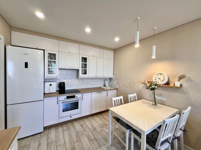 В квартире остается: кухонный гарнитур, варочная панель, духовой шкаф, вытяжка, встроенная мебель в детской, шкаф-купе в прихожей.