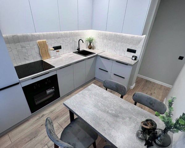 При продаже квартиры остается качественный встроенный кухонный гарнитур, варочная панель, вытяжка, встроенная прихожая, мебельная стенка в гостиной, шкаф-купе в маленькой комнате, встроенная мебель в ванной.
