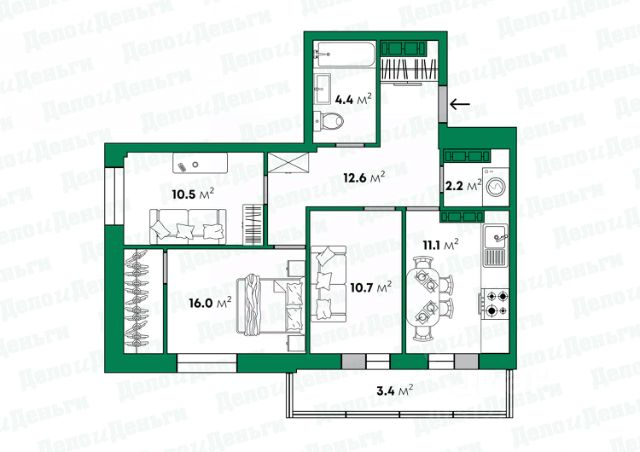 Продуманная и очень удобная планировка в квартире распашонка комнаты на разные стороны благоприятно для микроклимата в квартире! Общая площадь квартиры 57,9 кв.м. (без учёта лоджии), комнаты в квартире изолированные: кухня-гостиная 16,9 кв.м., комната 14 кв.м., и еще одна комната 9 кв.м. Из комнаты 9 кв.м. выходит застекленная лоджия - 3,4 кв.м. с красивым видом на город! В просторной входной группе 11,5 кв.м. удобно разместилась прихожая, обувница и шкаф-купе, рядом с прихожей расположена вместительная гардеробная комната 2,1 кв.м. очень удобно для хранения Ваших вещей! Просторный санузел 4,4 кв.м. Входная дверь - стальная с шумоизоляцией.