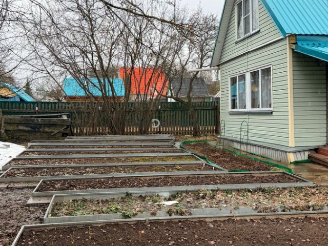Грядки - из металлических ограждений. Земля мягкая, плодородная.