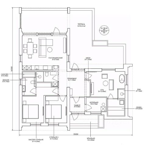 * мастер спальня 9м2 (с отдельным сан узлом) + еще 2 спальни по 10м2