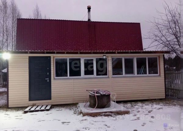 Дом Деревянный. Окна , дверь пластиковые, обшит профнастилом. 2 бани, туалет в доме и на улице, небольшой гараж, хоз.постройки. Хорошая печь. Сад, огород. Участок большой-в долговременной аренде, можно оформить в собственность за 20% от кадастровой стоимости.