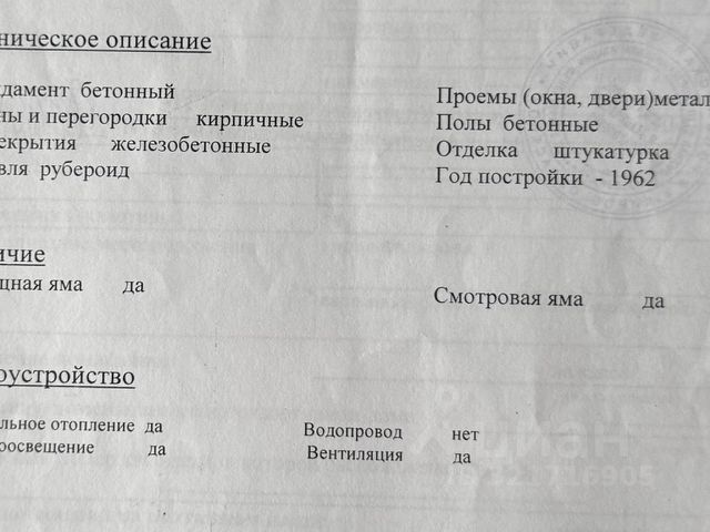 * Гараж в хорошем состоянии, есть смотровая и овощная яма, ж/б перекрытия, подходит для хранения автомобиля или как склад. Хочу быть с вами честным крыша гаража в одном месте немного подтекает. Я планирую это исправить сам, но если вы решите приобрести гараж до того, как я успею это сделать, мы обязательно договоримся о цене. Я готов подвинуться, чтобы сделка была выгодной для вас. Если заинтересованы, звоните или пишите! ТОРГ УМЕСТЕН! ЦЕНТРАЛЬНОЕ ОТОПЛЕНИЕ ОТКЛЮЧЕНО!