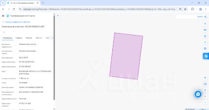 Земельный участок площадью 1000 кв. м, кадастровый номер 43:30:380412:381, категория земель: земли населенных пунктов, вид разрешенного использования: для дачного строительства. Местонахождение: Кировская область, Слободской рай...