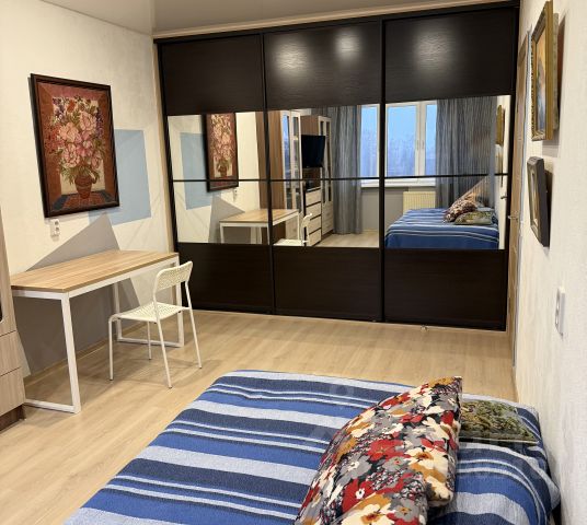 кухня-столовая - 22.7 кв. м, спальня - 20.3 кв. м., кабинет - 16.9 кв.м., также проектом в квартире предусмотрена вместительная гардеробная и постирочная.