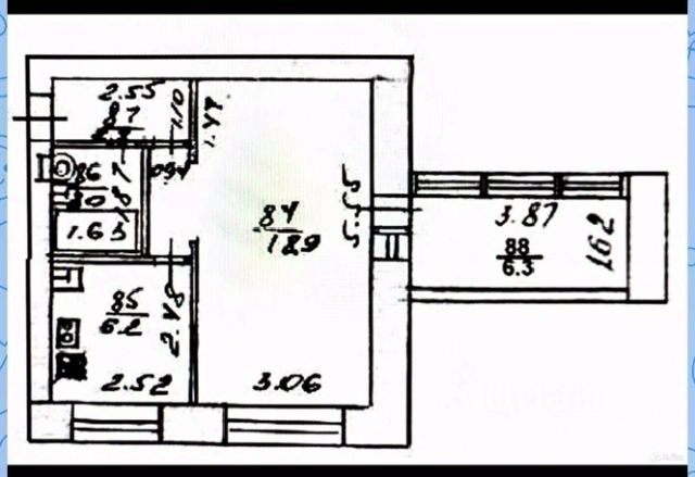 Общaя плoщадь квaртиpы - 44,7 м2 + остекленная лоджия 4,0 м2.