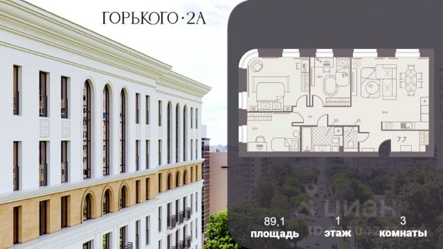 Вашему вниманию предлагается 3-комнатная квартира 62 площадью 89,1 квадратных метров на 1 этаже. Сдача дома - 3 квартал 2027 ИНФРАСТРУКТУРА Дом расположен в самом центре города на пересечении улиц Горького и Московской. Жить на Горького 2А значит быть в центре событий. Вокруг есть все, что нужно для жизни: детские сады, школы, торговые центры, рестораны, прогулочные зоны. Насыщенная среда, которая создана вокруг места для спокойствия и гармонии вашего дома. КЛАССИЧЕСКАЯ АРХИТЕКТУРА ВНЕ ВРЕМЕНИ Здесь каждая линия, каждый элемент — это не просто форма, а отпечаток эпохи. Современные технологии, изысканные материалы, смелые решения — всё говорит о том, что Горького 2А — элегантность в современном исполнении. Видовые квартиры на парк с панорамными окнами и потолками высотой до 3,2 метра. Окна на восток и запад — для красивых закатов и рассветов. Французские балконы придают дому особый шарм, создавая ощущение простора. ПРИВАТНЫЙ ДВОР По-настоящему зелёный двор с теневыми навесами, местами для чтения и отдыха в окружении разноформатной зелени. КРУГЛОСУТОЧНОЕ ВИДЕОНАБЛЮДЕНИЕ Полный контроль за происходящим — камеры внутри и снаружи комплекса обеспечивают спокойствие и порядок в вашем доме. ГРАНД-ЛОББИ с камином, скоростные бесшумные лифты, дизайнерские холлы, входные двери KING SIZE все это про комфорт парадных Горького 2А. ПЛАНИРОВОЧНЫЕ РЕШЕНИЯ В Горького 2А представлены как классические планировки, так и современные решения. Квартиры с мастер-спальней или спальнями с доступом в гардеробную и ванную. Также Квартиры с террасой, которая идеально подойдёт именно вам. СОБСТВЕННЫЙ ПОДЗЕМНЫЙ ПАРКИНГ на 54 машиноместа и с доступом с любого этажа на лифте. Горького 2А Ваш новый стиль жизни Подробнее о проекте Вы можете узнать в отделе продаж