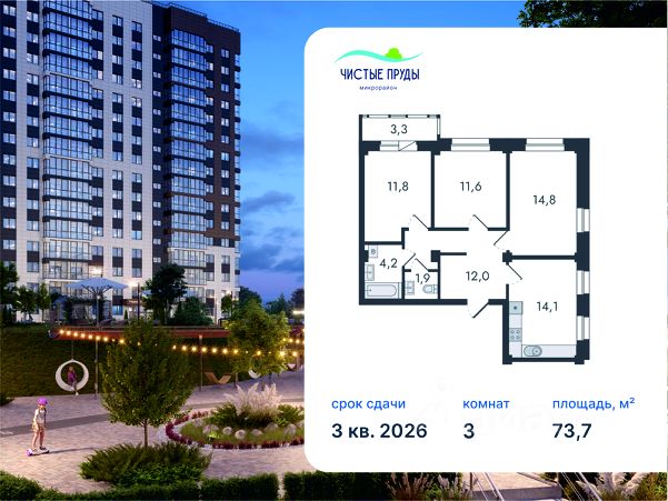 *Видовой 12 этаж, с двумя лифтами — пассажирским и грузовым, поэтому можно легко перемещаться с вещами или коляской.