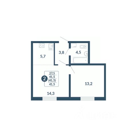 спальня 13,2 м2 + жилая комната 11,9 м2