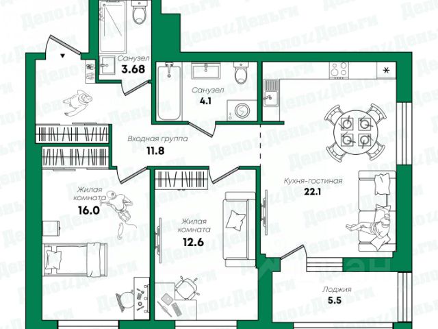 В уютном районе Кирова продается 1-комнатная квартира площадью 45.00 кв. м . Квартира расположена в новом жилом комплексе комфорт-класса "Инноград" от девелопера "Железно". "Инноград" - это больше, чем просто жилой комплекс. Это полноценный город в городе, где всё необходимое для насыщенной жизни, работы и отдыха находится в шаге от вашего дома. Транспортная доступность • 1 остановка общественного транспорта и 3 автобусных маршрута; • 10 минут на машине до Ж/Д вокзала; • 15 минут до центральной улицы Ленина; • 17 минут до набережной реки Вятки. Архитектура с характером Динамичный и современный облик "Иннограда" формирует архитектурное разнообразие. Здесь уютная среднеэтажная застройка сочетается с выразительными высотными доминантами. Для отделки среднеэтажных домов подобран кирпич - проверенный временем материал, который обеспечивает долговечность, превосходную шумоизоляцию и здоровый микроклимат в каждой квартире. Высотные кирпичи возводятся по современной монолитной технологии, что позволяет создавать здания со свободной планировкой и впечатляющей архитектурой. Благоустройство и удобство Ваш дом - ваша крепость. В "Иннограде" эта идея воплощена в концепции закрытых дворов. Это приватные и безопасные пространства только для жителей, где вы и ваши дети можете наслаждаться спокойствием и комфортом, будучи на шаг впереди городской суеты. Красоту ландшафта подчеркивает озеленение и МАФы. Центром социальной жизни "Иннограда" станут две общественных площади для встреч, прогулок и общения, а также инновационный плейхаб для активного отдыха жителей всех возрастов. Инфраструктура для жизни и бизнеса • Собственный бизнес-центр, ФОК и медицинский центр; • Соседский центр, коворкинг и Школа искусств; • Два встроенных детских сада на 280 мест и отдельно стоящий на 320 мест; • Новая современная школа на 1500 учеников; • Встроенная коммерция на первых этажах.
