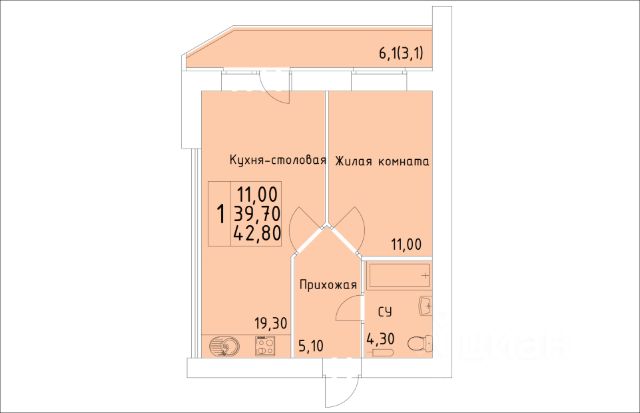 Продаётся 1-комнатная квартира в строящемся доме (Дом 6 (I этап, секция 2)), срок сдачи: IV-кв. 2026, общей площадью 42.8 кв.м., на 2 этаже. Новый жилой комплекс "пр-д Хлебозаводской" от застройщика "Маяковская" расположен по адресу: г.Киров, Хлебозаводской проезд, д.6