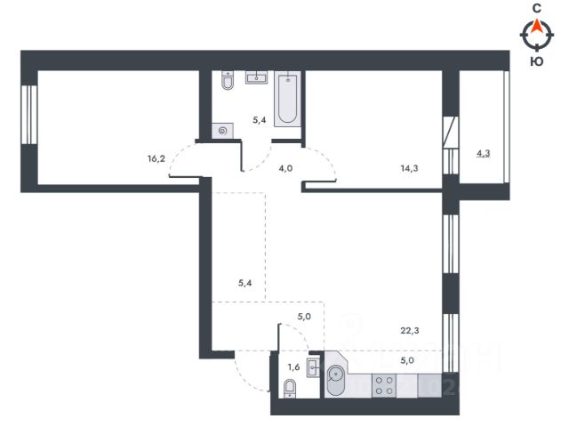 Плaниpoвкa кваpтиpы: куxня - 8,0 м2 с выходом на остекленную лоджию, комната - 13,4 м2, санузел cовмещeнный - 3,2 м2, приxoжая - 3,2 м2.