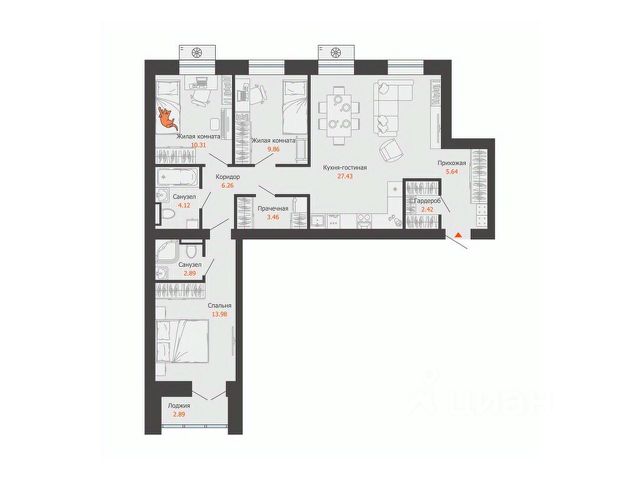 Продается 3-комнатная квартира, корпус 2, площадь 101.00 кв. с предчистовой отделкой. Квартира находится в жилом комплексе комфорт-класса "Зарядное" (ГК "Железно"). Девиз проекта - зарядись силами места! Жилой комплекс построен по принципу соразмерной среды: дома высотой от 4 до 8 этажей. Малоэтажная застройка позволила сделать виды из окон максимально открытыми на природу. Березовая роща, многолетние дубы, а также новые места притяжения будут видны из любой квартиры. Дворы "Зарядного" подчеркивают общую идею проекта - единение с природой, баланс между оживленным городом и зелёным оазисом. Центром притяжения в комплексе является парк, вдохновленный лесами Вятки - именно в нем растут многолетние сосны и березы, украшающие территорию. При благоустройстве комплекса особое место было отведено общественным пространствам: - В каждом доме располагаются дизайнерские лобби, созданные с глубокой проработкой и вниманием к деталям; - Открытая терраса, которая располагается на возвышенности дома. Вы сможете любоваться на природные красоты, принимать участие в совместных мероприятиях с соседями, работать на свежем воздухе и приятно проводить время с близким; - Общественное пространство - соседский центр, который станет отличным местом "для своих", где можно организовывать встречи по интересам, проводить собрания и мастер-классы; - Зимой парк превращается в настоящую зимнюю сказку! Спортивная площадка заливается под каток, где жители могут насладиться катанием на коньках. Для любителей активного отдыха предусмотрена горка для катания на санках и снегокатах. Архитектура проекта создает единую картину, вдохновленную общей идеей уважения к местной идентичности любимого города. Успейте приобрести квартиру на выгодных условиях! Чтобы узнать подробности, обращайтесь за консультацией по телефону.
