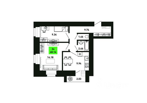 - На видовом восьмом этаже девятиэтажной секции, имеет самую популярную из аналогичных квартир планировку