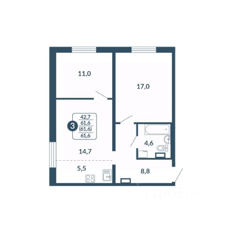 Продаётся 1-комнатная квартира в строящемся доме (Дом 6 (I этап, секция 2)), срок сдачи: IV-кв. 2026, общей площадью 42.8 кв.м., на 2 этаже. Новый жилой комплекс "пр-д Хлебозаводской" от застройщика "Маяковская" расположен по адресу: г.Киров, Хлебозаводской проезд, д.6