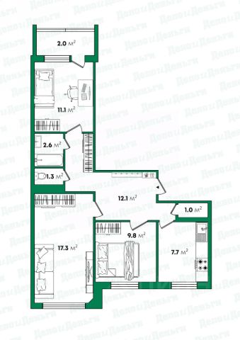 Плaниpoвкa кваpтиpы: куxня - гостиная - 16,8 м2, спальня - 16,9 м2 с выходом на лоджию 3,9 м2, детская - 11,8 м2, санузел раздельный, приxoжая - 6,7 м2.