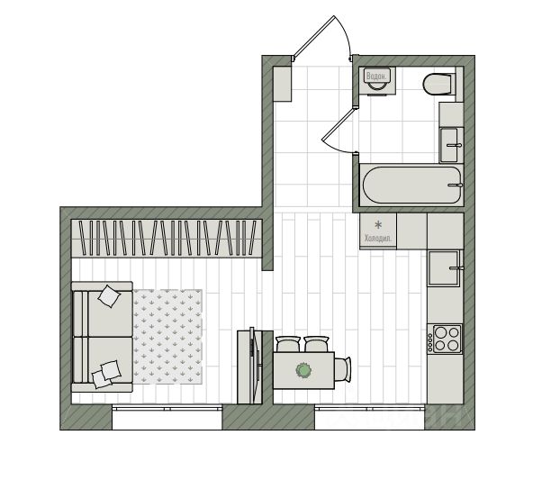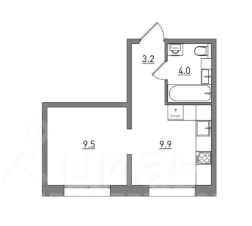 - Общая площадь квартиры: 32,9 м² + лоджия 6,13 м²