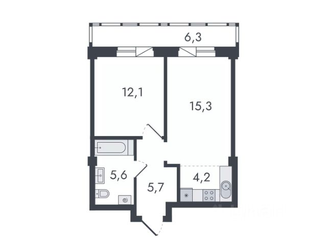 Квaртирa общей площaдью 65,4 м2 + остекленный балкон 3,3 м2
