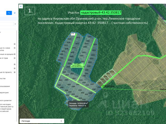 1. До 30 ноября на 5 % от цены продажи 100.050. рублей снижена цена на земельные участки в кадастровом квартале СНТ, ДНП за номером 43:42:350817: 2035-43\045\ 2021- 28. Общей площадью 141850 кв.м. Купите любой земельный участок согласно плана на фото-1. по цене 6340 руб за сотку. по адресу Кировская обл. Оричевский р-он. Территория Левинское городское поселение. Категория земель - Земли сельхозназначения. Вид разрешенного использования - Ведение дачного хозяйства! Смотрим последующие фото. Частная собственность. Статус кадастрового квартала — Актуальный. Все участки размежеваны по 15 соток, и поставлены на кадастровый учет, продаются напрямую от собственника. 2. У Вас есть возможность расширить площадь участка исходя из Ваших потребностей! Все документы готовы к продаже, один взрослый собственник. - Юридически чистая и абсолютно безопасная сделка. - Регистрация договора купли продажи, на основе обязательного нотариального оформления перехода права собственности. -Низкая цена! -Инвестиционная привлекательность! -Кроме того до момента заключения договора,обсуждаем возможные условия ваших платежей. 3. На участках возможны необходимые ресурсные подключения: газ, электричество от 5 до 15 квт. ( произведен монтаж трансформатора подключения, установлены столбы воздушной электрической разводки. На основе Вашего заявления устанавливаете свой ( личный) прибор учета потребляемой эл.энергии. 4. Земельные участки СНТ,ДПН кадастрового квартала расположены в 27 км от г. Кирова. Вся территория кадастрового квадрата окружена лесным массивом. С восточной стороны, не более 700 метров, протекает речка СНИГИРЕВКА, а это круглогодичная рыбалка! В расстояние не более одного километра расположен крупный водоем, один из ряда Стрижевских карьеров - популярное место отдыха. Река Быстрица. Асфальтированная трасса федерального значения (см. фото локации яндекс карты) проход небольшого участка по плотной грунтовой дороге круглогодичного использования, расстоянием до 2.5.км, позволяют без труда доехать до ВАШИХ будущих подворий. 5. Дополнительные фотографии участков, видео по запросу. Купить земельный участок без посредников в Кировской области.