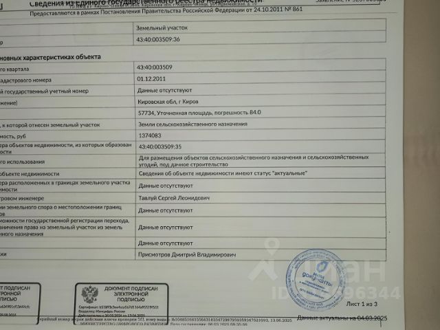Продаётся земельный участок общей площадью 57734 кв. м. Адрес (местонахождение) объекта: Кировская область, г. Киров. рядом с д. Луговики, Лисицины Земельный участок имеет категорию: земли сельскохозяйственного назначения, разрешённое использование: под дачное строительство. Кадастровый номер: 43:40:003509:36 Растояние от города - 25 км (от "Метро" до участка). Есть возможность провести электричество и газ на участок, рядом проведён газопровод. Рассмотрю варианты обмена на авто, как нового, так и с пробегом. Как доехать до участка: Киров-Садаковский-Бахта-Русское-Луговики/Лисицины . Если не отвечаю на телефонный звонок, значит я на работе. Пишите личное сообщение тут и я обязательно отвечу, как только буду в сети Один взрослый собственник, без обременений и долгов. Небольшой торг возможен.