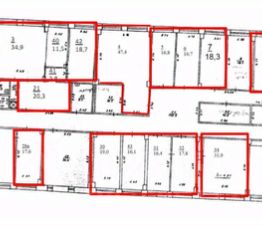на 2 этаже 18,3 кв. м, 20,3 кв. м, 38,6 кв. м, 47,4 кв. м, 16,8 кв. м, 16,7 кв. м, 16,8 кв. м, 17,6 кв. м, 19 кв. м, 16,4 кв. м, 17,8 кв. м, 31,9 кв. м, 16,1 кв. м, 34,9 кв. м, блок помещений - 34 кв. м,