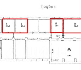 В аренду сдаются помещения свободного назначения на 2, 3 и цокольном этажах: 2 этаж - 12,1 кв. м, 39,2 кв. м, 20,8 кв. м, 39,8 кв. м; 3 этаж - 13,4 кв. м, 17,6 кв. м, 17,5 кв. м; цокольный этаж - от 11,2 кв. м до 42,3 кв. м.