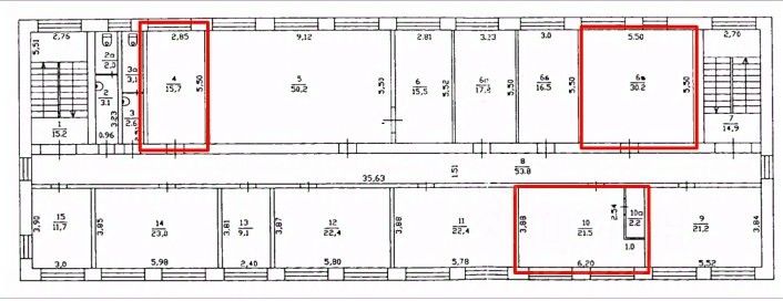 В аренду сдаются помещения свободного назначения на 2 этаже площадью 15,7 кв. м, 30,2 кв. м, 23,7 кв. м.