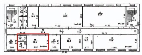 В аренду сдается блок помещений свободного назначения на 2-ом этаже общей площадью 30,3 кв. м.