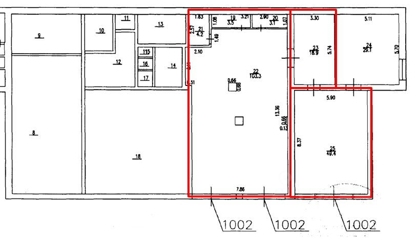 В аренду сдается блок помещений с гаражными боксами общей площадью 182,4 кв. м: гаражные боксы 103,3 кв. м и 49,4 кв. м, подсобные помещения 3,1 кв. м, 4,2 кв. м, 18,9 кв. м, санузел.