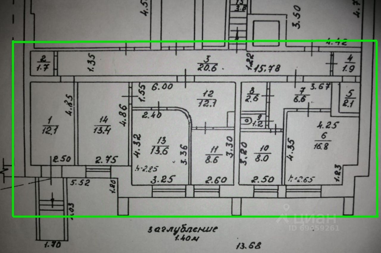 Приемная 12 кв.м., 5 отдельных изолированных кабинетов: 13,4 кв.м., 13,6 кв.м., 8,6 кв.м., 8 кв.м., 16,8 кв.м.
