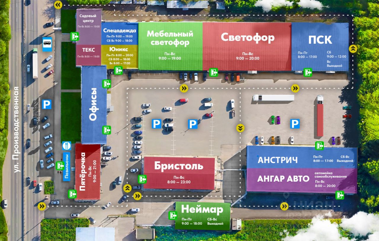 Выгодное местоположение: объект находится в близ оживленной транспортной развязки (выезд на советский тракт, направление Советск, Яранск), в зоне видимости автотранспорта в обоих направлениях. Объект характеризуется хорошей транспортной доступностью. Высокая плотность движения (трафик) по ул. Производственная обеспечивает хороший покупательский поток. Остановка общественного транспорта в обоих направлениях располагается перед ТК Домострой.