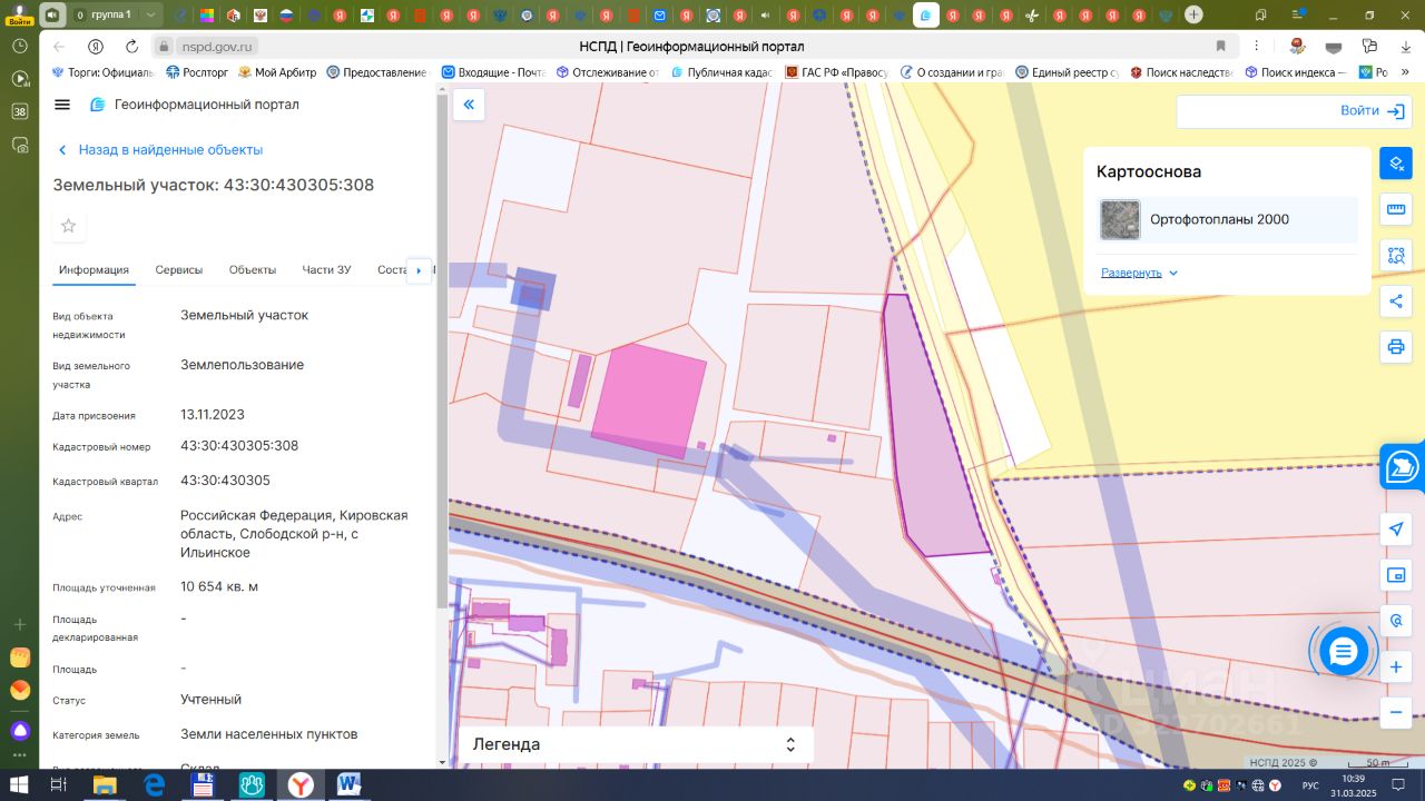 Земельный участок с кадастровым номером 43:30:430305:308 площадь 10654 по адресу Российская Федерация, Кировская область, Слободской р-н, с Ильинское